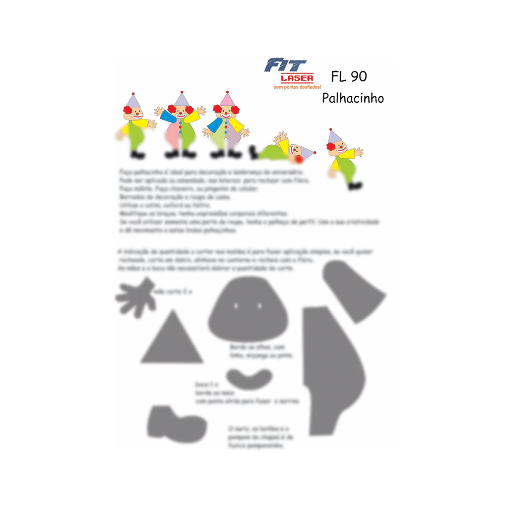 Além disso, o molde já possui a marcação dos olhinhos do palhaço, o que facilita na hora de aplicar, riscar ou bordar. Com o FL 90, você terá tudo o que precisa para criar peças únicas e encantadoras.