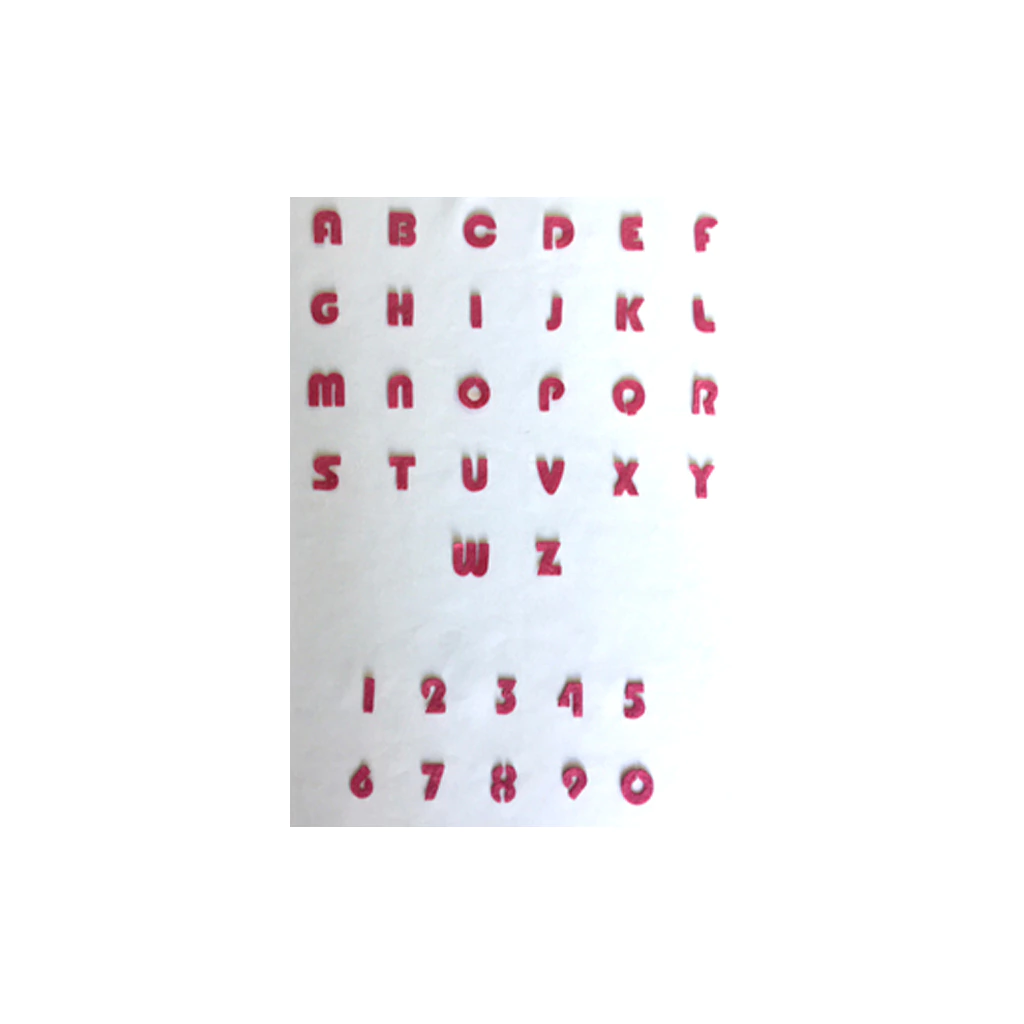 FL 904 - São moldes em aluminio, feito especialmente para você recortar tecidos sintéticos sem desfiados no contorno, O Alfabeto 2,5 cm de altura completo é composto por letras e números, com altura de 2,5cm.