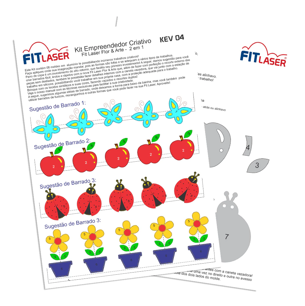 Com nosso Kit Empreendedor Criativo Fit Laser, você vai desbravar um mundo de possibilidades criativas! São 08 moldes em alumínio que vão deixar seus projetos ainda mais incríveis.